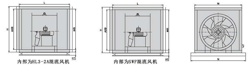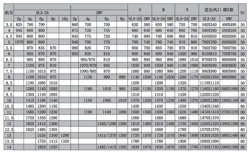 風機選用HL3- 2A或SWF系列風機,性能參數依照HL3-2A或SWF系列風機中同型號的性能參數。