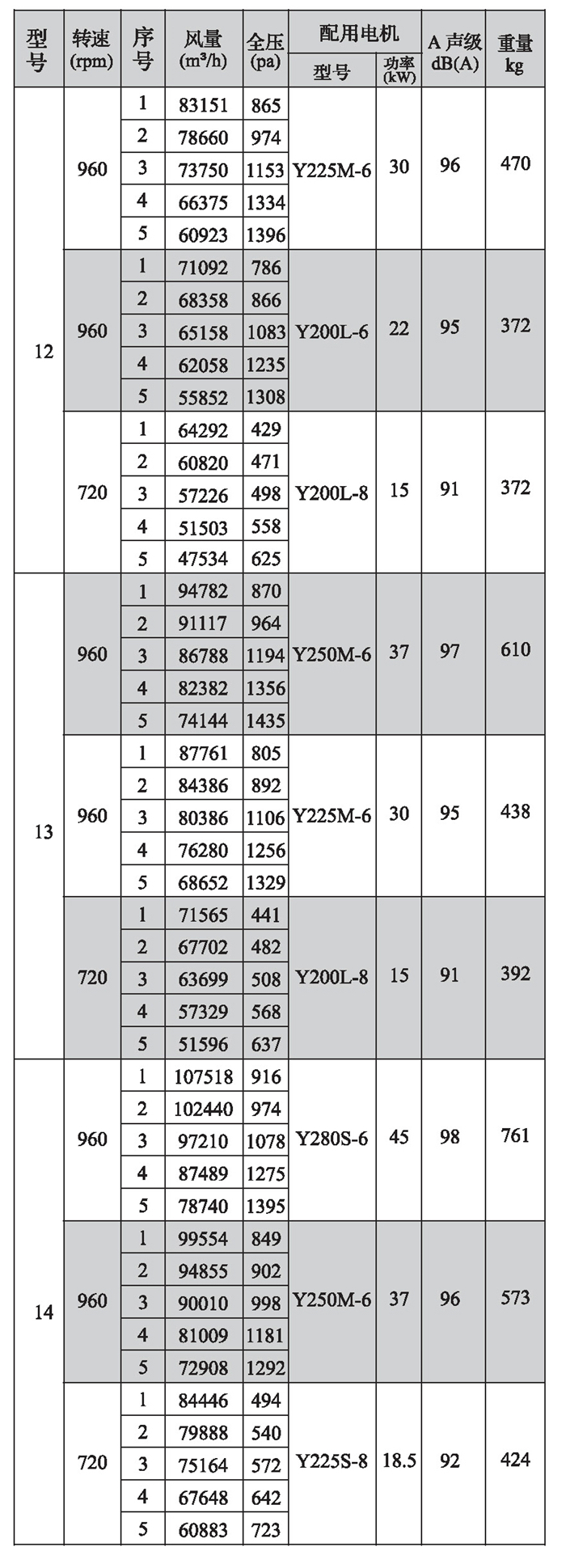 SWF-I系列混流式風機性能參數(3)