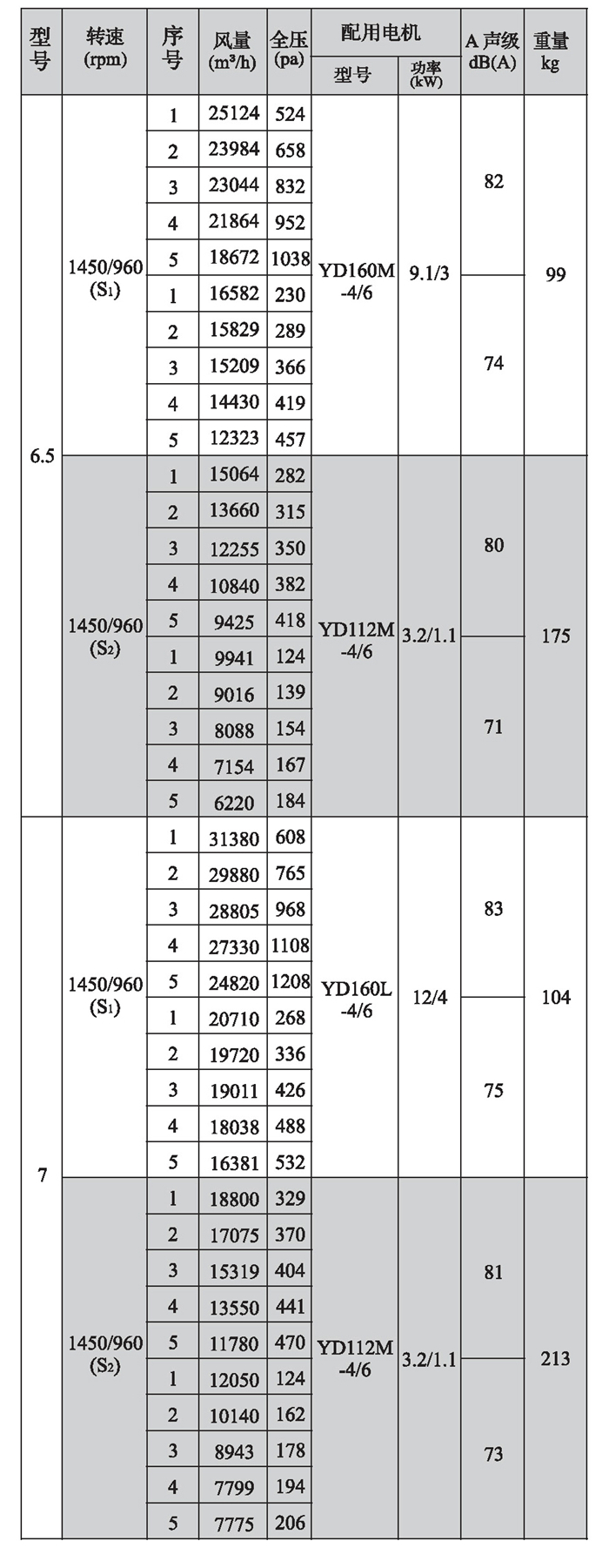 SWF-I系列混流式風機性能參數(2)