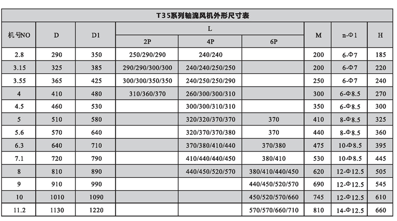 注:FT35為防腐型軸流風(fēng)機(jī),用于輸送有腐蝕性的氣體;