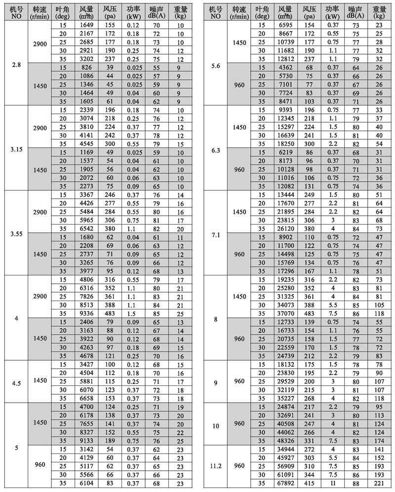 三、T35型風(fēng)機(jī)性能參數(shù)表
