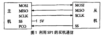 在整個單片機設計系統中,必須自始至終保證只能有一片單片機作為主機。當一片單片機設置為主機后,其余的單片機只能作為從機。圖1中,主機的Ss接高電平。主機的一個I/O腳PCO用于控制從機的SRPI允許SS腳工作。當PCO設置為低電平時,允許從機的SPI工作。在傳送時,數據同時發送(串行移位輸出)和接收(串行移位輸入)。不論是主機接收、從機發送,還是主機發送、從機接收,均由主機啟動次傳送過程,因此,當主機檢測到從機發來的準備好信號后オ啟動一次傳送。因此,兩片單片機之間必須有相互握手信號。*簡單的實現辦法是兩片單片機的某兩個I/O腳對接,一根線用于主機發送、從機檢