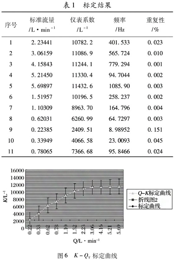 ②按分段線性化處理,在滿足1%誤差要求,可將渦輪流量計量程擴展到0.29588~5.13462L/min量程。