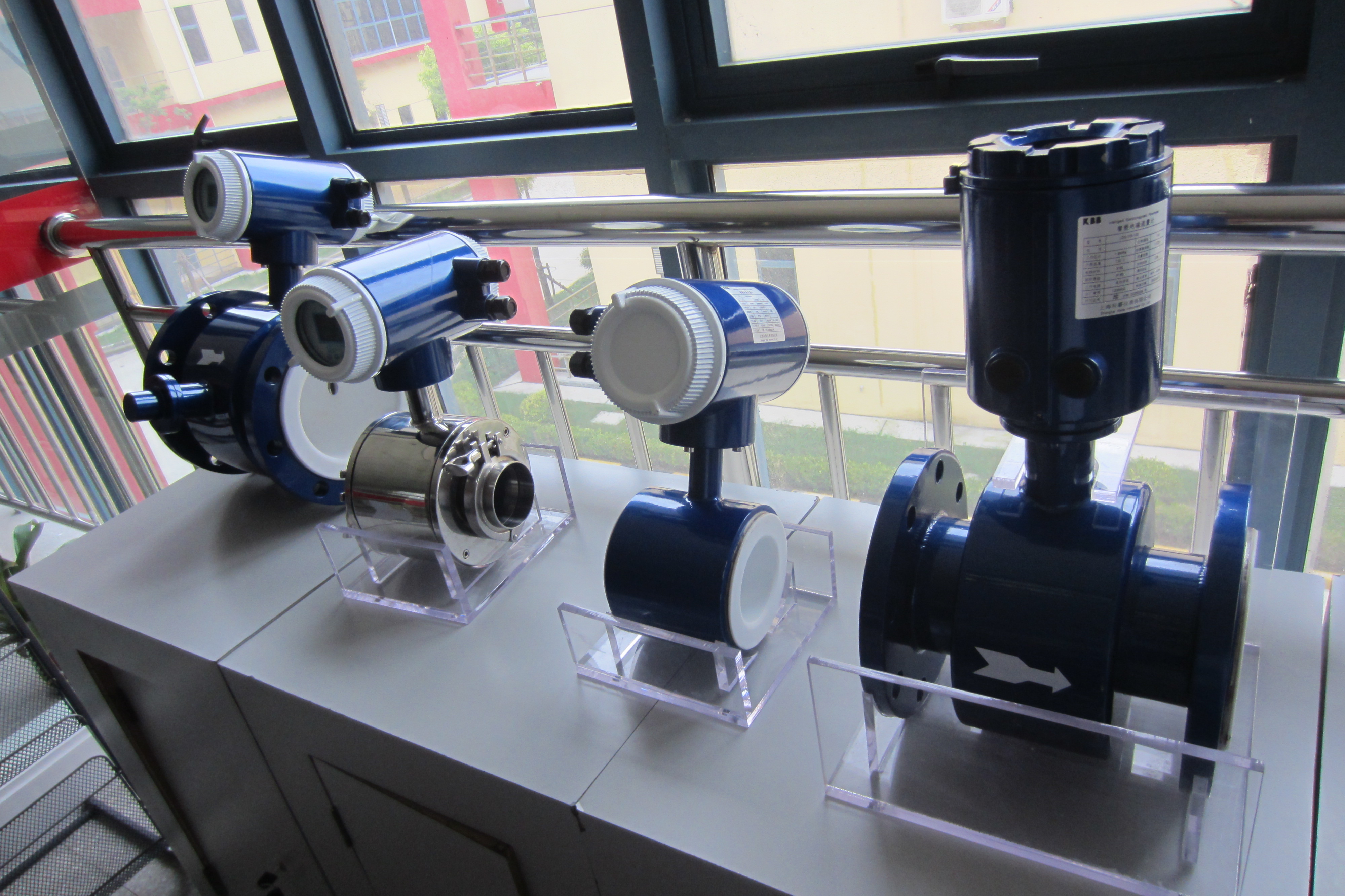 電磁流量計由傳感器和轉(zhuǎn)換器兩部分組成,是種測量導(dǎo)電介質(zhì)體積流量的感應(yīng)式儀表。它根據(jù)法拉第電磁感應(yīng)原理,在與測量管軸線和磁力線相垂直的管壁上安裝一對檢測電極。當(dāng)導(dǎo)電液體沿測量管軸線運動時,導(dǎo)電液體切割磁力線產(chǎn)生感應(yīng)電勢,磁感應(yīng)電勢由兩個檢測電極檢出,數(shù)值大小與流量成比例。傳感器將感應(yīng)電勢作為流量信號傳送到轉(zhuǎn)換器,經(jīng)放大變換濾波及系列的數(shù)字處理,用帶背光的點陣式液晶顯示瞬時流量和累積流量。