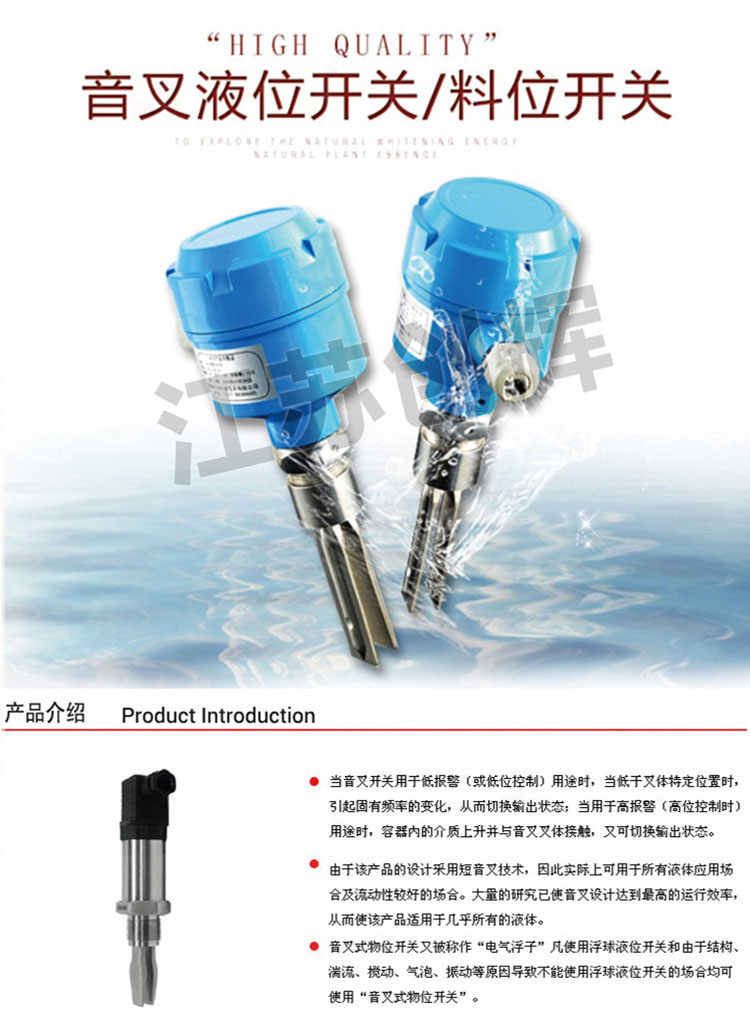 普通的音叉料位開關(guān)是通過安裝在音叉基座上的一對壓電晶體使音叉在一定共振頻率下振動。當(dāng)音叉料位開關(guān)的音叉與被測介質(zhì)相接觸時(shí),音叉的頻率和振幅將改變,音叉料位開關(guān)的這些變化由智能電路來進(jìn)行檢測,處理并將之轉(zhuǎn)換為一個(gè)開關(guān)信號。