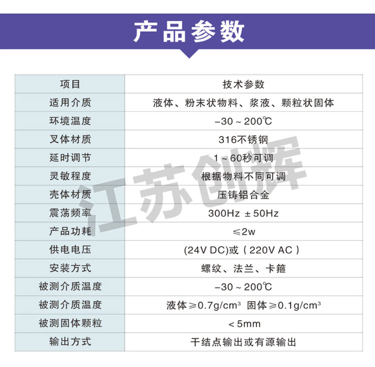 CH-YC-11音叉料位開關(guān)媲美進(jìn)口品牌,性能指標(biāo)如下表: