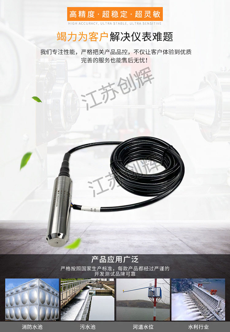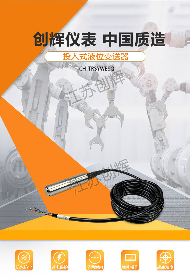 CH-TRSF系列防腐投入式液位變送器適用于石油化工、冶金、電力、制藥、供排水、環保等系統和行業的各種介質的液位測量。精巧的結構,簡單的調校和靈活的安裝方式為用戶輕松地使用提供了方便。4~20mA、0~5v、 0~10mA等標準信號輸出方式由用戶根據需要任選。